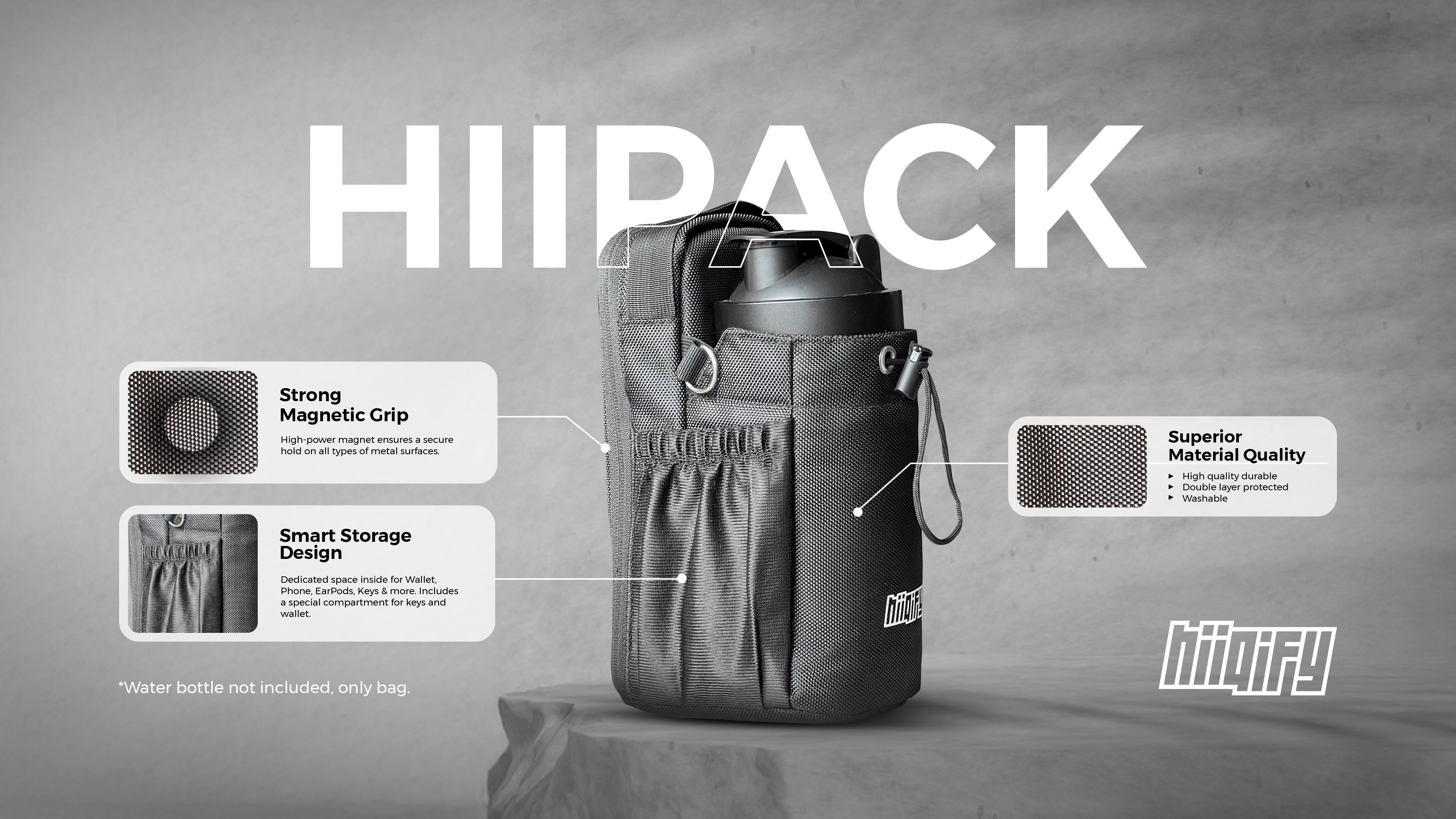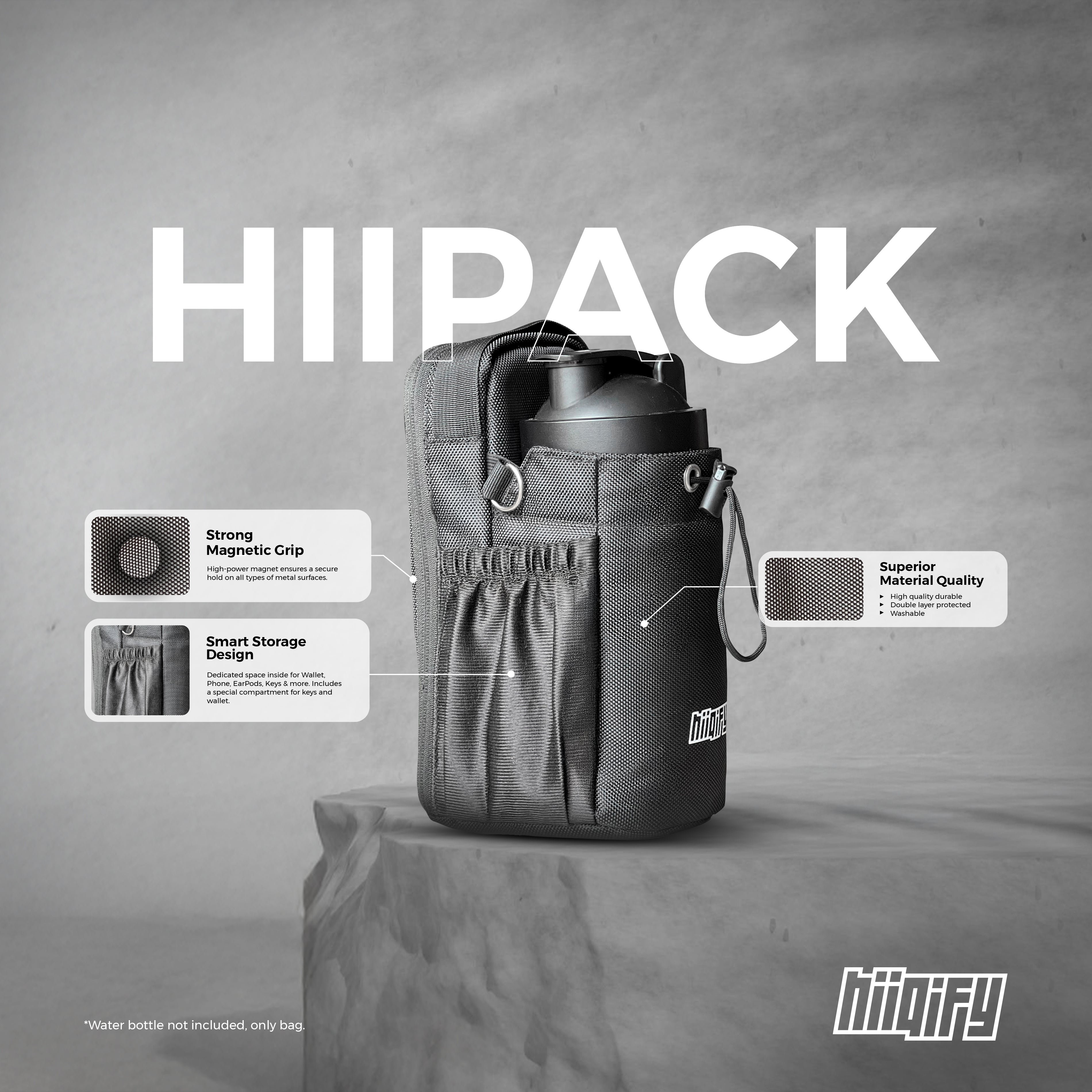 - Magnetic Back: Attach the HiiPack to any metal equipment or surface for easy access to your essentials.